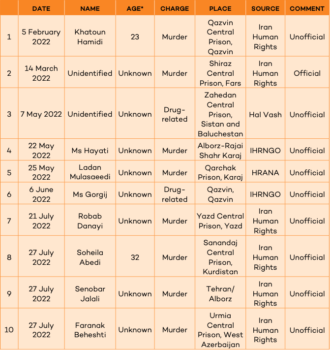 LIST OF WOMEN EXECuTED IN 2022