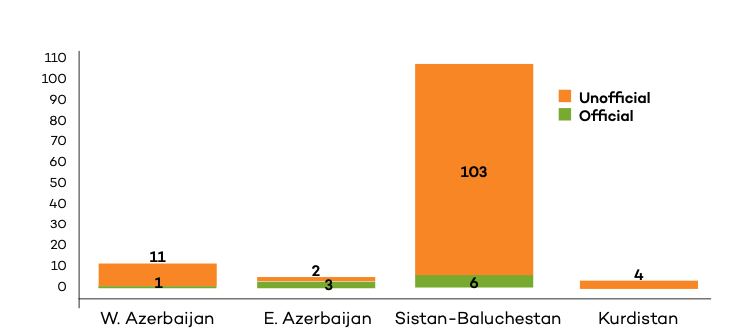 However, given that the execution of ethnic minorities are not implemented exclusively in their home provinces, it is difficult to specify the exact number of each ethnic minority groups’ execution. On the other hand, information about those executed does not always include their ethnicity. The execution of Baluch prisoners are in many cases carried out in prisons outside the Baluchistan region.
