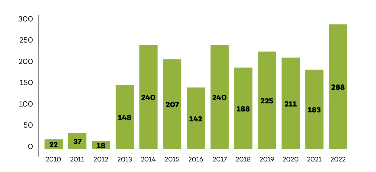 According to data gathered by Iran Human Rights, at least 2,149 qisas executions were carried out between 2010 and 2022. The diagram below shows the trend of qisas executions during this period.
