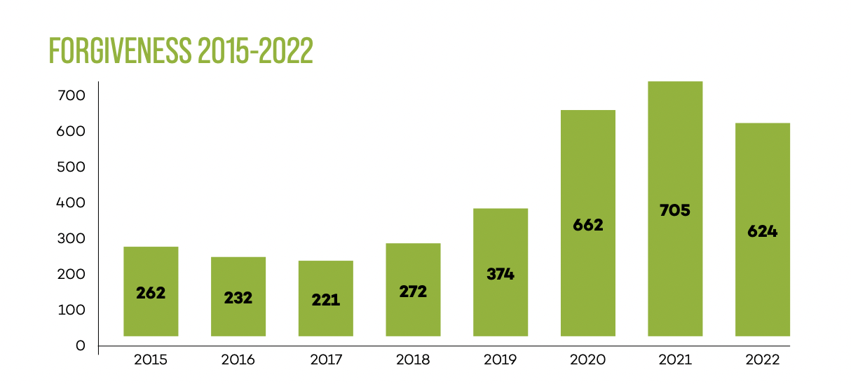 As for the execution numbers, not all forgiveness cases are reported by the Iranian media. Based on reports by the Iranian media and, to a lesser extent, through its own network inside Iran, Iran Human Rights has identified 624 forgiveness cases in 2022, compared to 705 cases in 2021, 662 cases in 2020, 374 in 2019 and 272 in 2018.