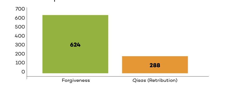 As in the previous five years, the forgiveness cases outnumbered those of implemented qisas executions in 2022. The actual numbers for both forgiveness and qisas death sentences are believed to be higher. Reports indicate that the number of forgiveness cases might be several folds higher than the numbers presented in this report.