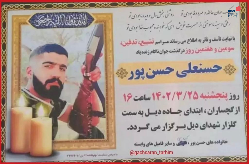 Iran Human Rights (IHRNGO); June 14, 2023: Hassanali Hassanpour and Milad Ghobadi were executed for murder charges in Yasuj and Gachasaran prisons in Kohgiluyeh and Boyer-Ahmad Province.