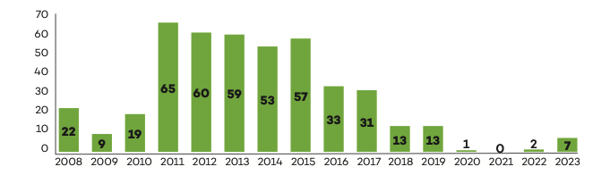The diagram above shows public executions since 2008. The number of public executions in 2020 was significantly lower due to COVID-19 pandemics restrictions, and no public executions were recorded in 2021. Since 2022, public executions have started rising, with numbers more than tripling in 2023 compared to 2022.