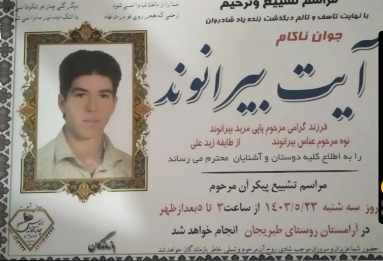 Two other men were executed at the prison on 12 August. One of their identities has been established as 29-year-old Ayat Biranvand from Khorramabad. The second man’s identity has not been established at the time of writing. Both men were on death row for murder.