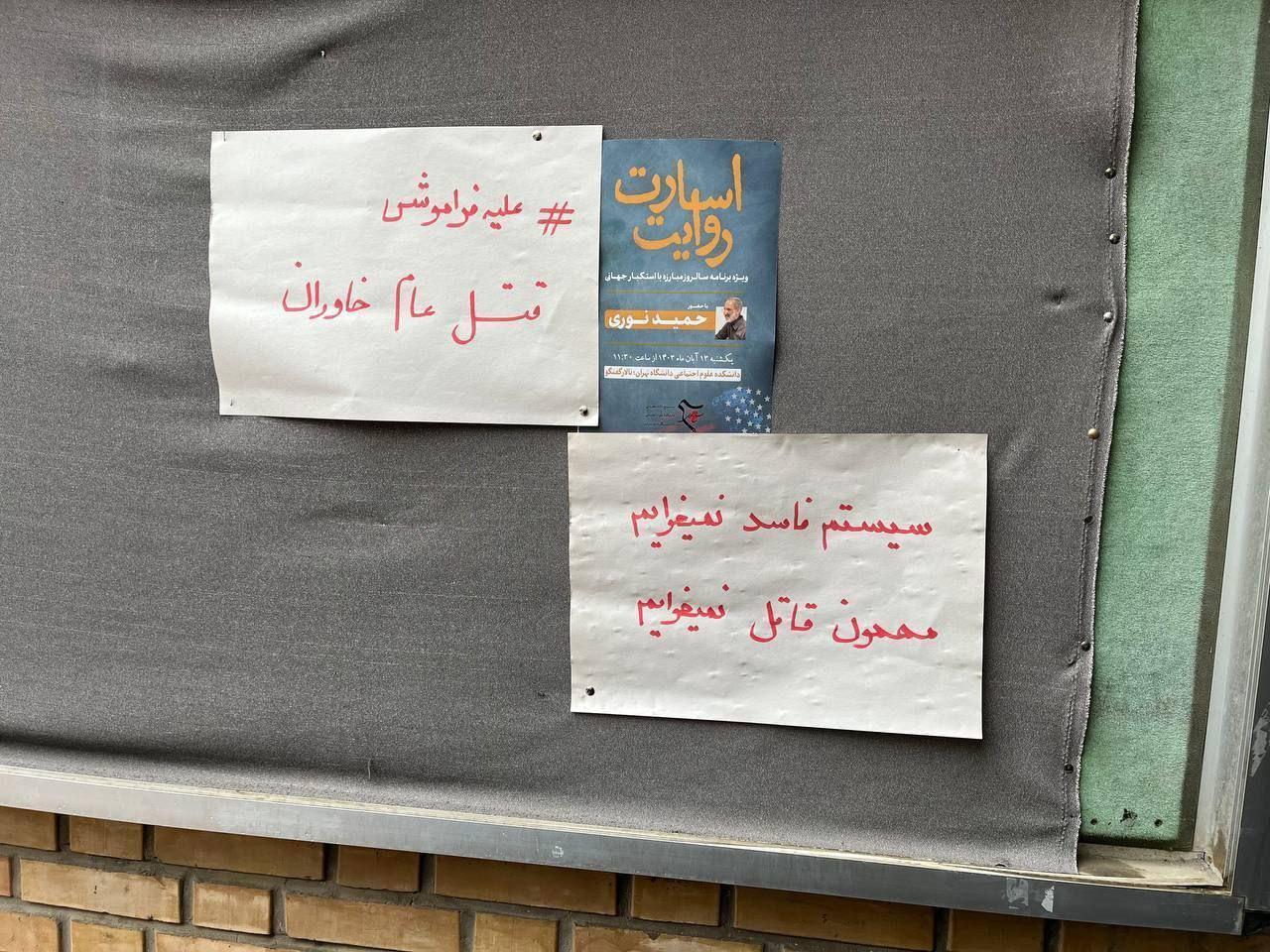 When Hamid Nouryi, one of the perpetrators of the 1988 massacre of political prisoners visited the Humanities College of Tehran University on 6 November 2024, students wrote signs that read: “Against Forgetting, the Khavaran Massacre.” Khavaran is the most famous site of a 1988 massacre mass grave.