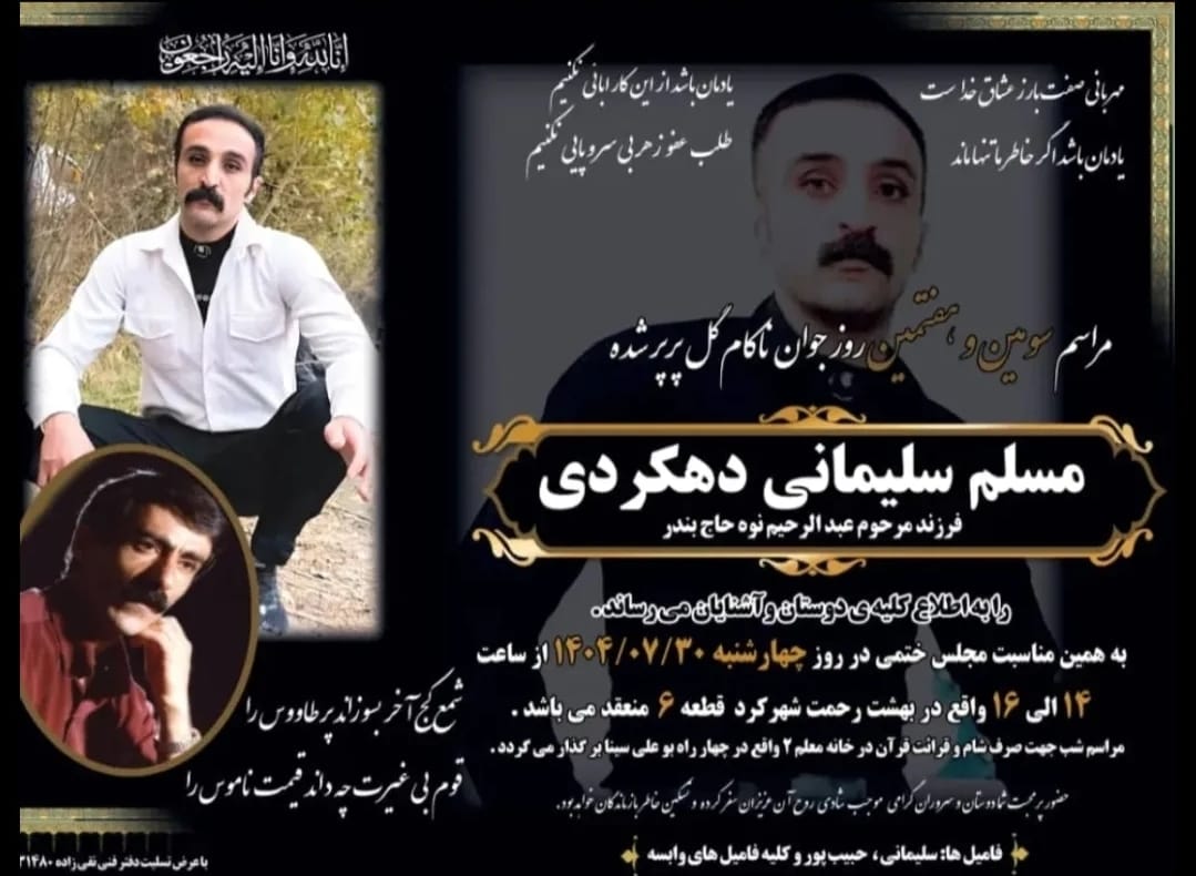 Iran Human Rights (IHRNGO); October 21, 2025: Moslem Soleimani Dehkordi, a man on death row for murder, was executed in Shahre Kord Prison.
