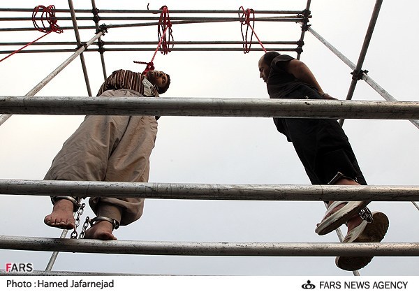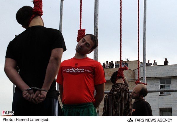 Iran Human Rights, June 20: What are these people watching early morning on June 20? The public execution of four young men in Tehran, Meysam Crossing, Mahallati street.