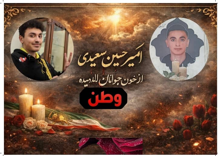 Amir Hossein Saeedi, born on 11 May 2006, was a computer engineering student. He was wounded by a direct shot at approximately 10:00 PM on 9 January near the Soleimaniyeh gas station on Pirouzi Street. He was killed later that night at Fajr Hospital on the same street.