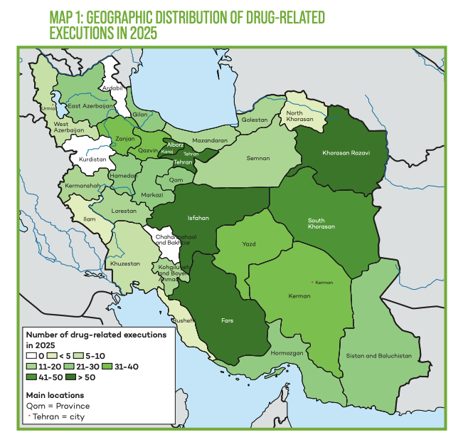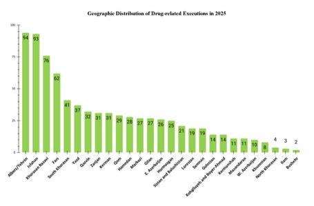 In 2025, IHRNGO recorded drug-related executions in 27 provinces compared to 27 in 2024, 26 in 2023, 21 in 2022, 15 in 2021, 12 in 2019 and 2020 and 7 provinces in 2018.