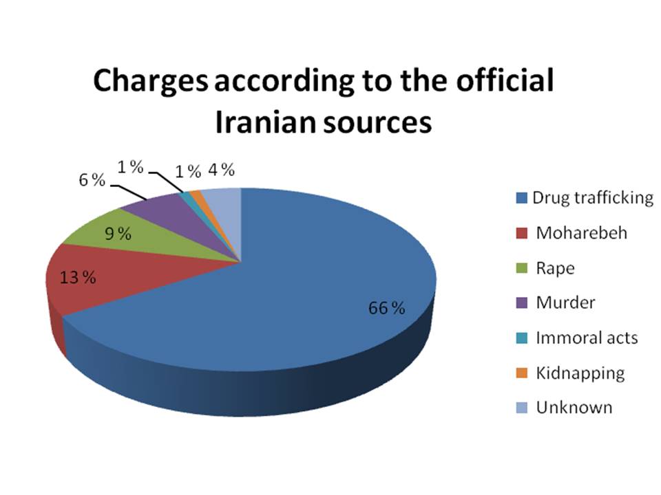 Note that charges against those executed under the mass-executions in the Khorasan provinces are not included here. According to our sources most of those executed in Mashhad were convicted of drug trafficking.