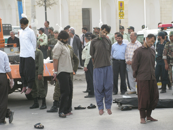 حکم اعدام چهار نفر صبح امروزپنجشنبه،20 تیر 1387 بصورت علنی در میدان چمران شهر برازجان انجام شد
