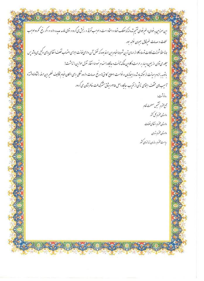 اعتراض وکلای دادگستری به روئسای قوای سه‌گانه