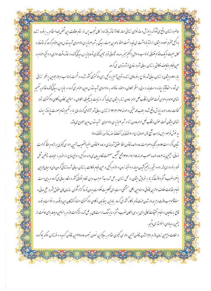 اسامی وکلای مزبور توسط رییس قوه قضاییه اعلام می گردد." این موضوع با اعتراضات زیاد وکلا و حقوق دانان و همچنین نهادهای حقوق بشری همچون عفو بین الملل روبرو شد. سازمان عفو بين‌الملل با انتقاد از تغييرات جديد در قانون آيين دادرسی کيفری ايران، اين تغييرات را «ميخی ديگر بر تابوت عدالت» در ايران توصیف کرد. اعضای هیات مدیره کانون وکلای دادگستری مرکز نیز تاکید کردند که تبصره ماده ۴۸ قانون آیین دادرسی کیفری جدید مغایر با حق دفاع ملت است. همچنین در هفته‌های گذشته خبر بازداشت محمد مقیمی یکی از وکلای حقوق بشری به جرم دست دادن با موکل خود حساسیت ویژه‌ای را برانگیخت. یک وکیل دادگستری که نخواست نامش فاش شود به سازمان حقوق بشر ایران گفت: این وکیل که پس از چند روز با قرار کفالت ۲۰ میلیون تومانی آزاد شد قرار است به اتهام رابطه نامشروع دون زنا و عمل منافی عفت (از طریق دست دادن با موکله، زن نامحرم شرعی) بزودی دادگاهی شود.11231744_10153095713429023_5672041620550083850_n همچنین این وکیل گفت: برخی دادگستری ها اقدام موهنی انجام داده و اسامی وکلای خانمی که پوشش ایشان را غیر اسلامی تشخیص داده‌اند را مقابل در دادگستری به تابلو زده و از ورود ایشان به مجتمع‌های قضایی جلوگیری می‌کنند. این اقدام که بدون هیچ‌گونه حکم قضایی صورت گرفته است باعث محرومیت این بانوان وکیل از حقوق اجتماعیشان می‌شود. این منبع همچنین عنوان کرد: بازرسی‌های توهین آمیز و افراطی وکلای دادگستری در محاکم یکی دیگر از موارد اعتراضی وکلا است. تالحظه تنظیم این خبر بیش از ۳۰۰ تن از وکلای دادگستری نامه‌ اعتراضی خطاب به روئسای قوای سه‌گانه را با محوریت چهار موضوع فوق به امضا رسانده و خواهان رفع فشارهای وارده به جامعه وکلا شده‌اند.         11225748_10153095713639023_1995153166378275252_n 11665763_10153095718539023_7745372289414216386_n