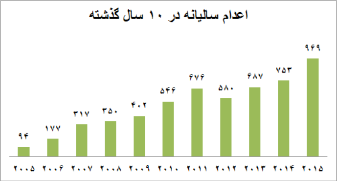 • ۹۶۹ نفر در سال ۲۰۱۵ اعدام شدند (با افزایش ۲۹ درصد در مقایسه با سال ۲۰۱۴)