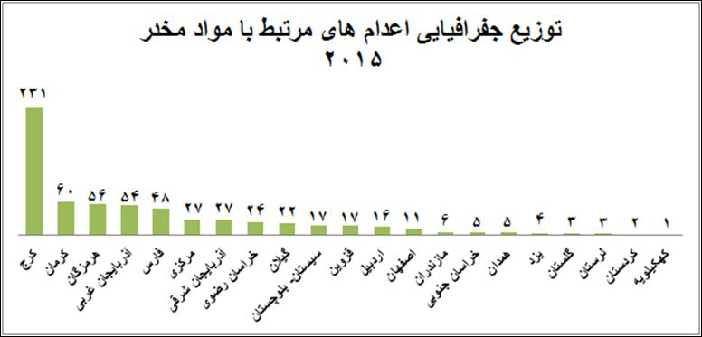 توزیع جغرافیایی اعدامهای مرتبط با موادمخدر