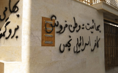 نمونه‌ای از آزار و اذیت شهروندان بهایی از طریق شعار نویسی بر دیوار محل کسب