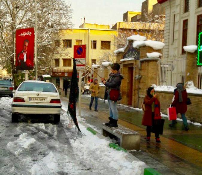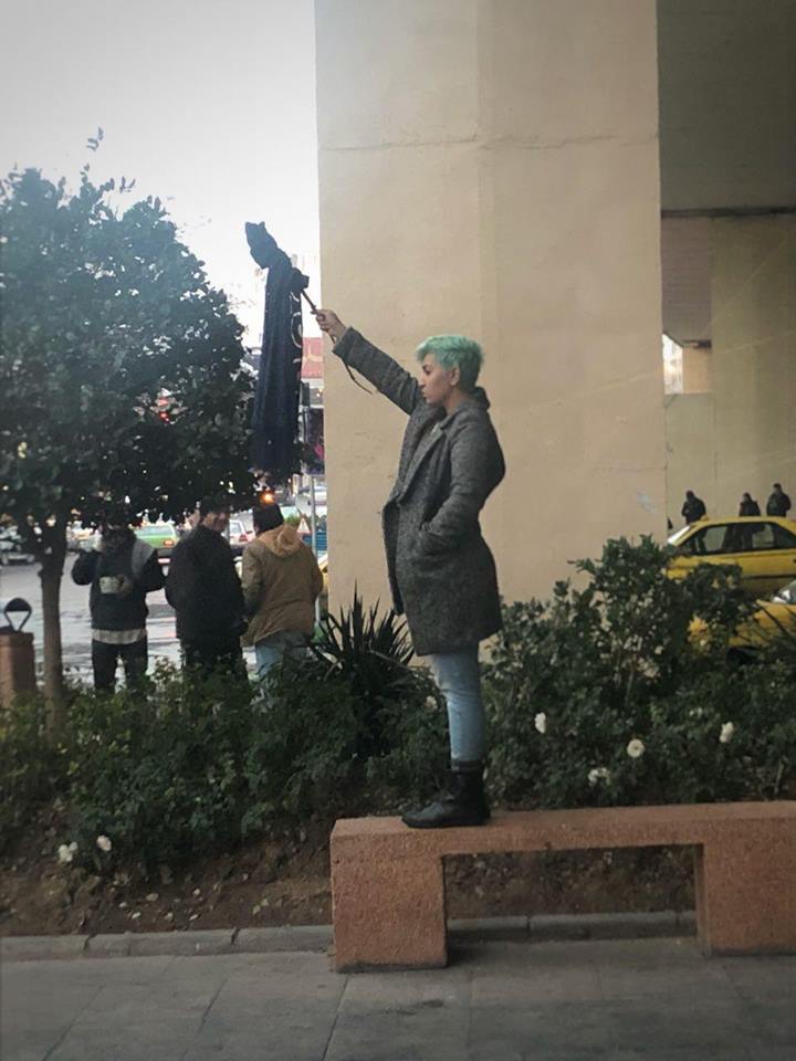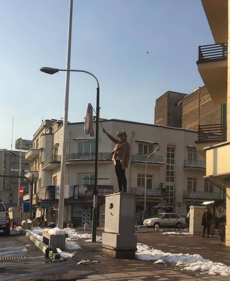 روز دوشنبه ۹ بهمن، تصاویری از پنج زن در شبکه های اجتماعی منتشر شد که ایشان را در حالی که روسریهای خود را بر سر چوب زده و در اعتراض به حجاب اجباری تکان میدادند، نشان میداد.
