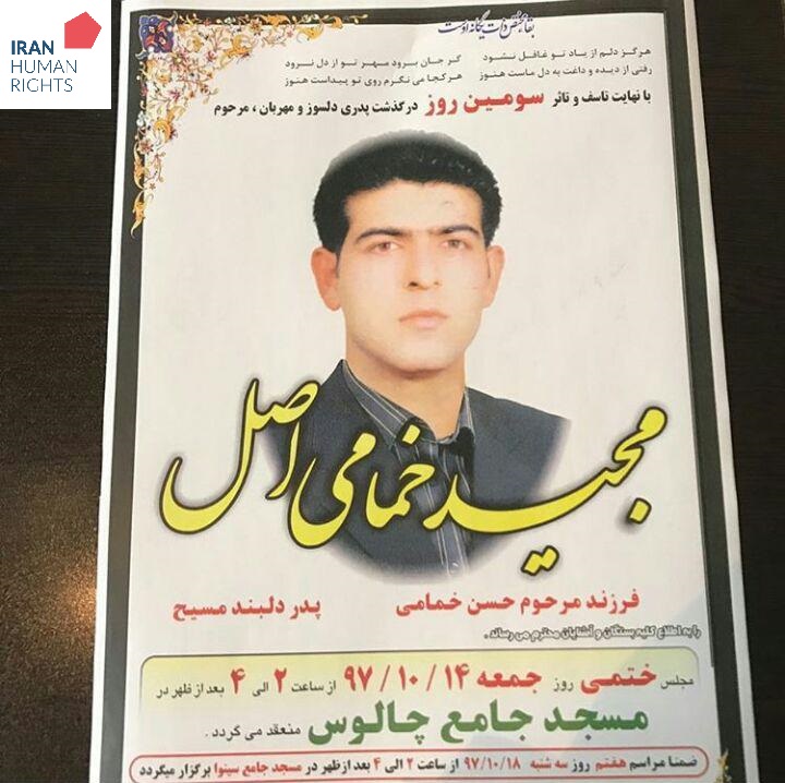سازمان حقوق بشر ایران، ۱۳ دی ماه ۱۳۹۷: یک زندانی به نام مجید خُمامی اصل که با اتهام قتل عمد به قصاص نفس (اعدام) محکوم شده بود در زندان نوشهر به دار آویخته شد.