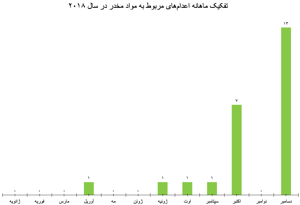 تفکیک ماهانه اعدام‌های مربوط به مواد مخدر در سال ۲۰۱۸