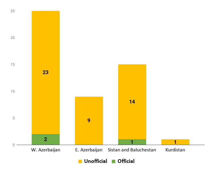 پراکندگی جغرافیایی اعدام در ایران- اعدام در مناطق اتنیکی در سال ۲۰۱۸