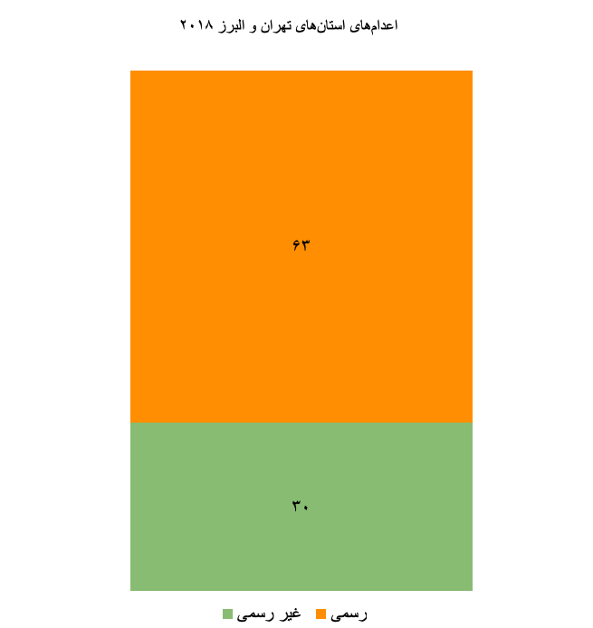 این نمودار که در بالا مشاهده می‌کنید، اعدام‌های رسمی (سبز) و غیررسمی/ اعلام ‌نشده (زرد) در زندان اوین واقع در شمال تهران و سه زندان شهر کرج واقع در استان البرز که زندانیان متهم تهران و استان البرز را در خود جای داده‌اند به نمایش می‌گذارد. با این حال، در این زندان‌ها نیز زندانیان از سایر نقاط کشور حضور دارند. این شامل زندان های قزل‌حصار کرج، رجایی شهر و زندان مرکزی کرج (همچنین بنام ندامتگاه شناخته شده) می‌شود. هر سه این زندان‌ها در استان البرز واقع شده‌اند. زندانیان زندان‌های قزل‌حصار کرج و ندامتگاه را عمدتا محکومان جرایم مربوط به مواد مخدر تشکیل می‌دهند، در حالی که بیشتر زندانیان در زندان رجایی‌شهر کرج را زندانیان که با اتهام قتل عمد به اعدام (قصاص) محکوم شده‌اند، تشکیل می‌دهند. اکثر اعدام‌های مخفیانه یا اعلام‌نشده در سال ۲۰۱۸ در زندان رجایی‌شهر کرج اجرا شده‌اند.