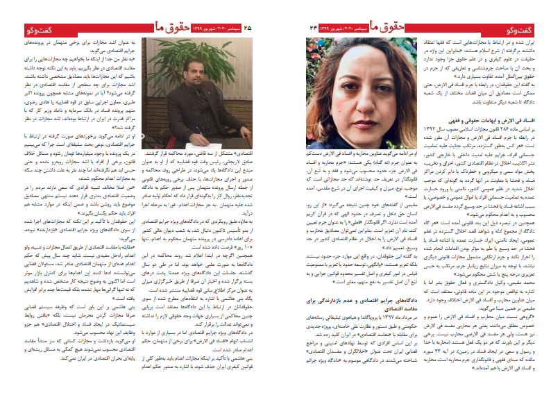 «به نظر من جدا از اینکه ما بخواهیم چه مجازات‌هایی را برای مفاسد اقتصادی در نظر بگیریم، باید به این نکته توجه داشته باشیم که این مجازات‌ها باید مصادیق مشخصی داشته باشند. اشد مجازات برای چه سطحی از مفاسد اقتصادی در نظر گرفته می‌شود؟ آیا در نمونه‌های مشابه همچون پرونده اکبر طبری، معاون اجرایی سابق در قوه قضاییه یا هادی رضوی، متهم پرونده فساد در بانک سرمایه و داماد وزیر کار که با مراکز قدرت در ایران در ارتباط بوده‌اند، اشد مجازات در نظر گرفته شد؟»
