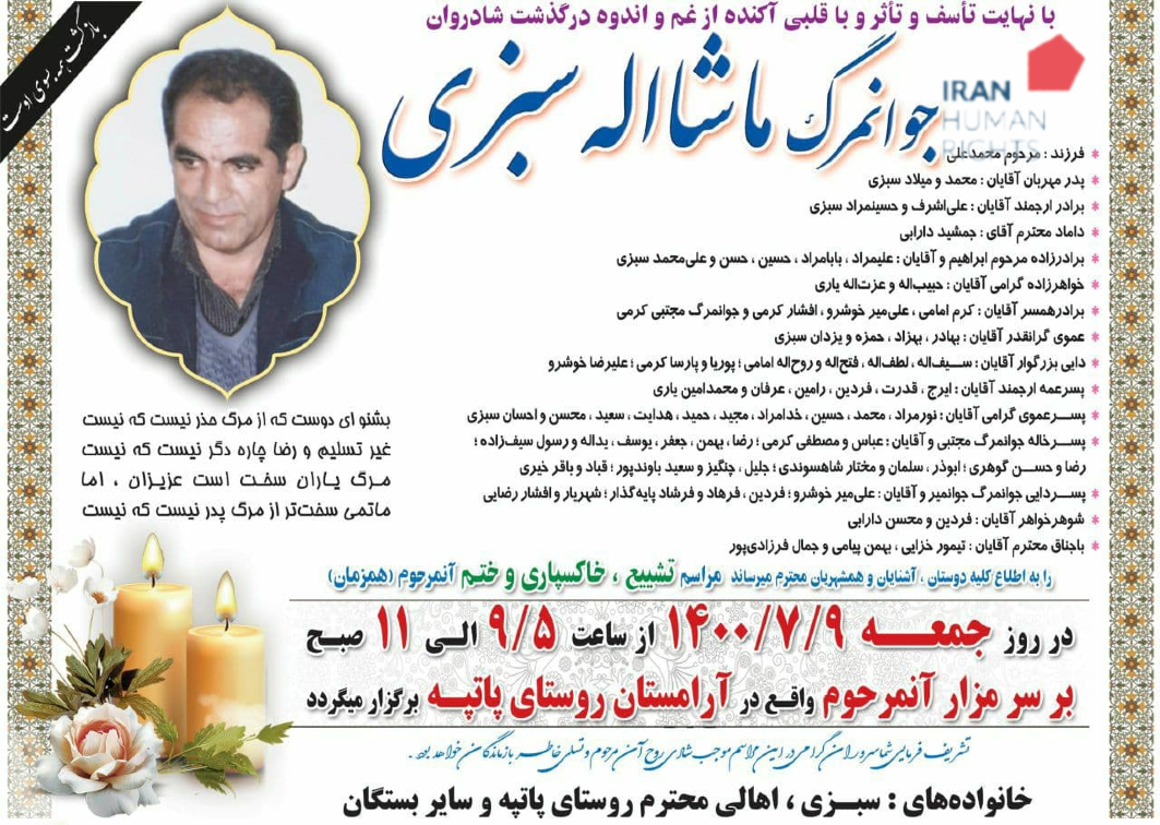منابع مطلع به سازمان حقوق بشر ایران گفتند: «ماشاالله سبزی با قسامه به اعدام محکوم شده بود و و خودش در طول این سالها همیشه گفته بود، من مرتکب قتل نشدهام و کاملا بیگناهم و حتی روز سه شنبه خانواده اش به زندان رفته بودند و به آنها گفتند که او تا ملاقات آخر را انجام ندهد، اعدام نمیشود. در حالیکه او را به انفرادی بردند و حکم اجرا شد و خانواده اش آخرین ملاقات را هم با او نداشتند».