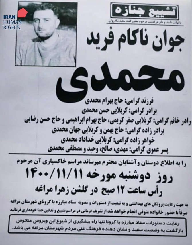سازمان حقوق بشر ایران؛ ۱۱ بهمن ماه ۱۴۰۰: حکم دو زندانی به‌نام‌های فرید محمدی و مهرداد کریم‌پور که در یک پرونده با اتهام «لواط به عنف» به اعدام محکوم شده بودند، در زندان مراغه به اجرا درآمد.