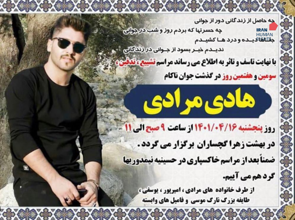 سازمان حقوق بشر ایران؛ ۱۶ تیر ۱۴۰۱: حکم یک زندانی به نام هادی مرادی که با اتهام «قتل عمد» به قصاص نفس (اعدام) محکوم شده بود، در زندان گچساران (کهگیلویه و بویراحمد) به اجرا درآمد.