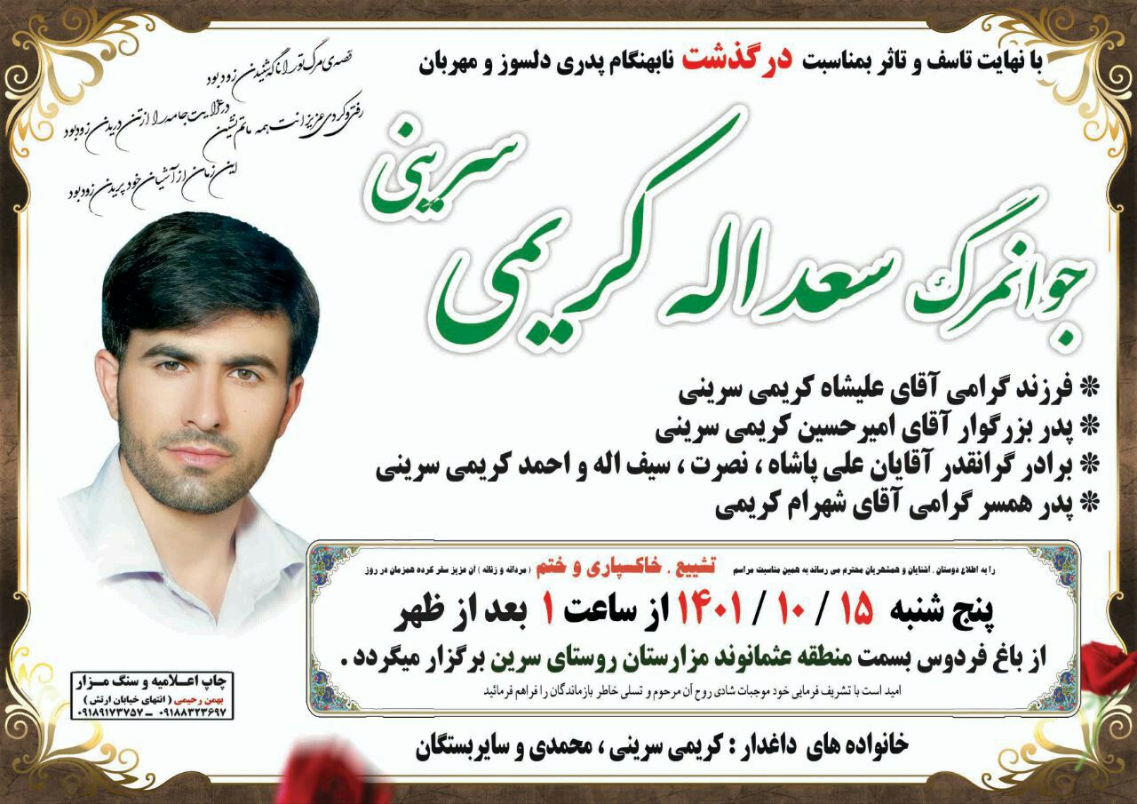 تصویر آگهی ترحیم سعدالله کریمی سرینی: