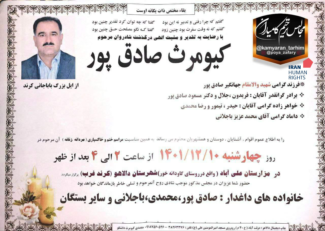 تصویر آگهی ترحیم کیومرث صادقپور: