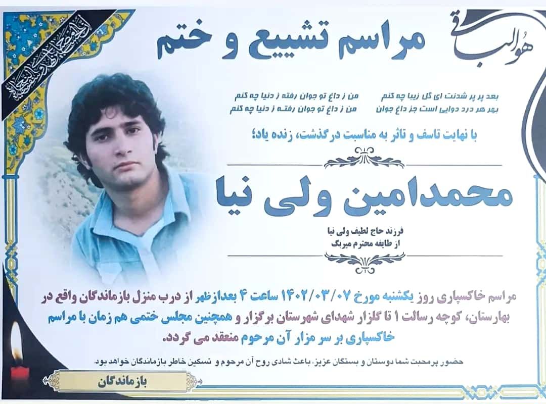 تصویر آگهی ترحیم محمدامین ولینیا: