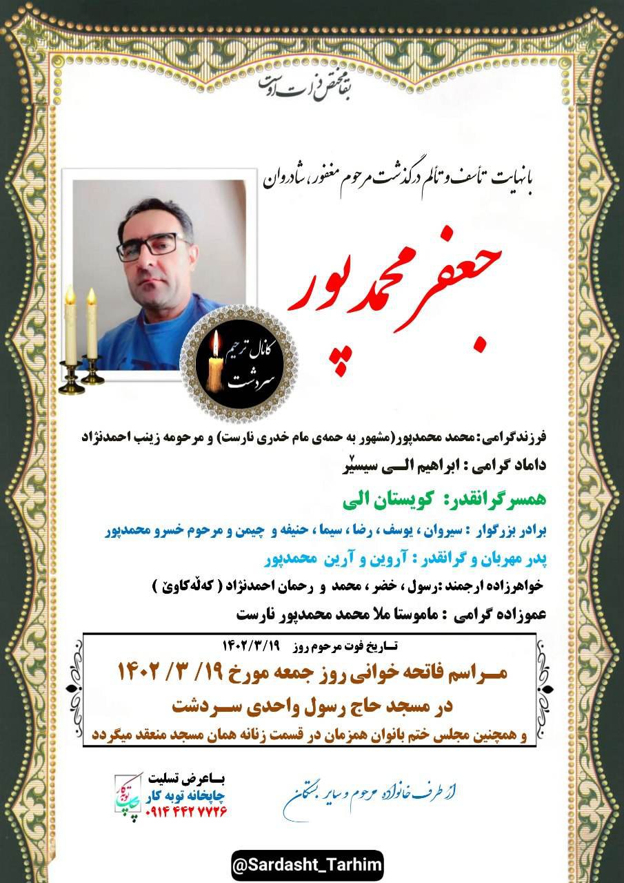 تصویر آگهی ترحیم جعفر محمدپور:
