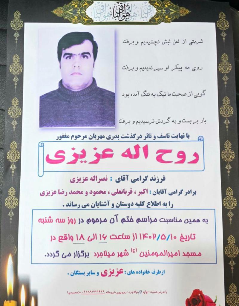تصویر زیر آگهی ترحیم روح‌الله عزیزی است: