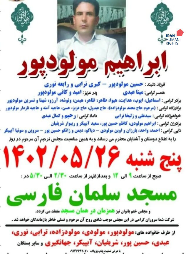 تصویر آگهی ترحیم ابراهیم مولودپور: