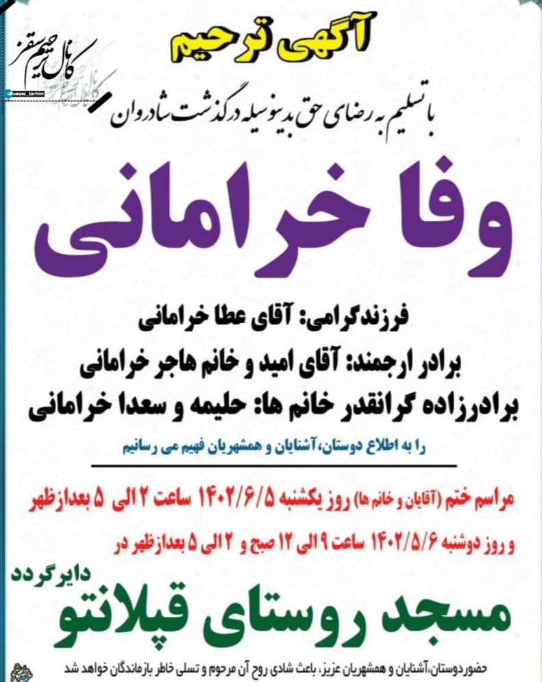 تصویر آگهی ترحیم وفا خرامانی: