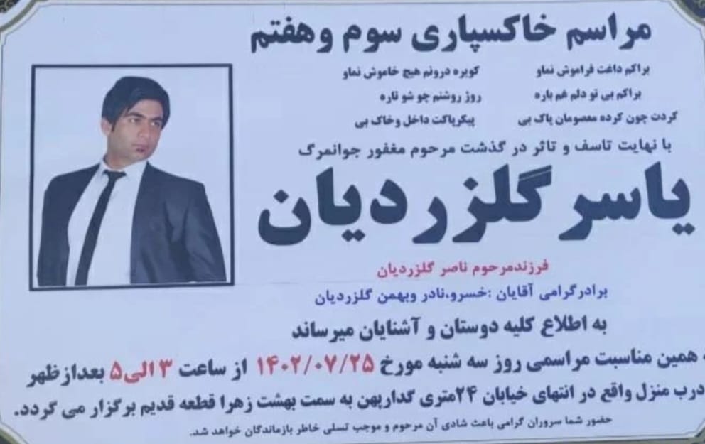 تصویر زیر آگهی ترحیم یاسر گلزردیان است: