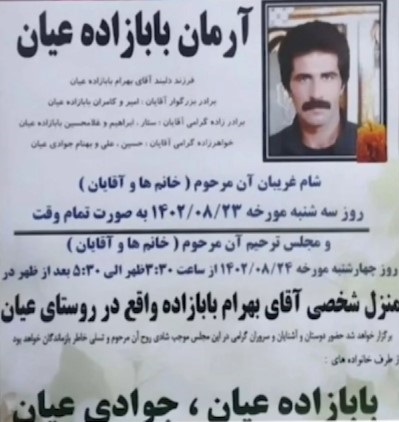 تصویر زیر آگهی ترحیم آرمان بابازادهعیان است:
