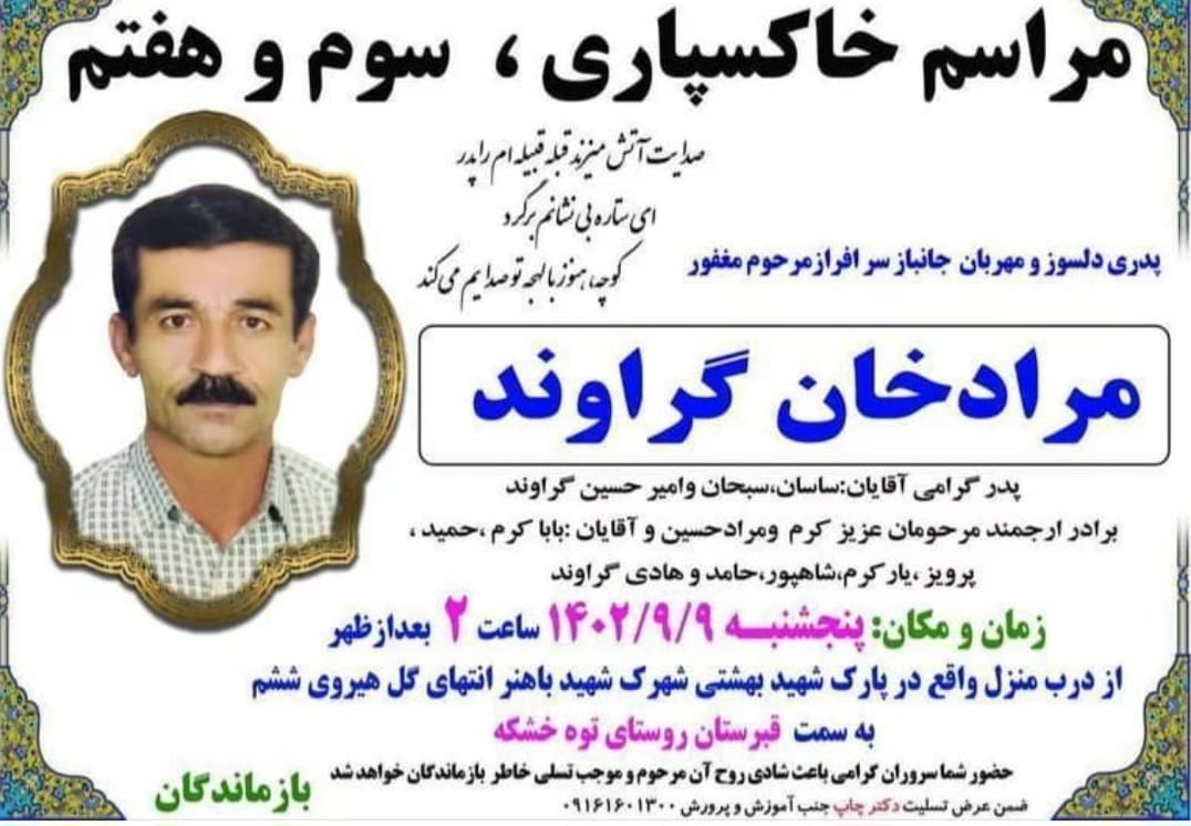 تصویر زیر آگهی ترحیم مرادخان گراوند است: