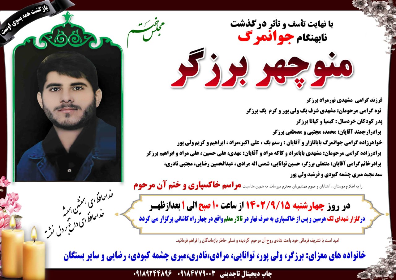 تصویر زیر آگهی ترحیم منوچهر برزگر است: