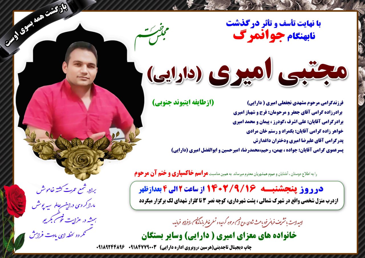 تصویر زیر آگهی ترحیم مجتبی امیری است: