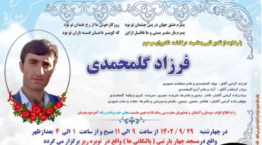 تصویر زیر آگهی ترحیم فرزاد گلمحمدی است: