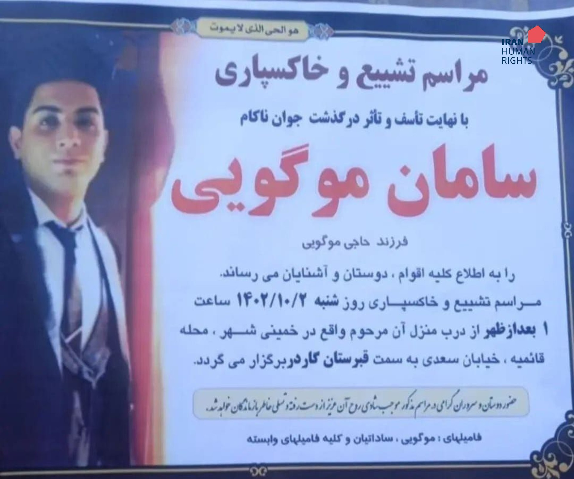 تصویر زیر آگهی ترحیم سامان موگویی است: