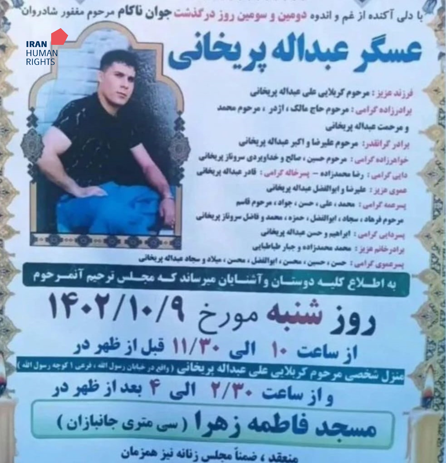 تصویر زیر آگهی ترحیم عسگر عبداله پریخانی است:
