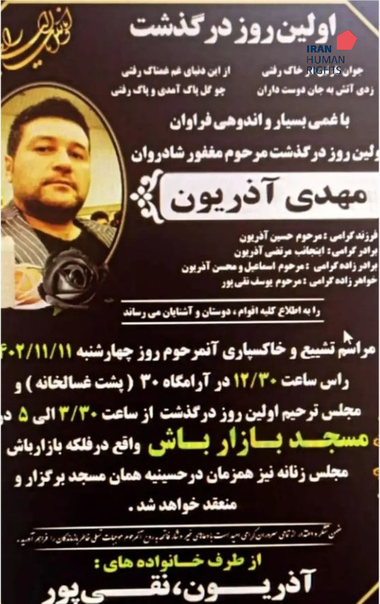 تصویر زیر آگهی ترحیم مهدی آذریون است: