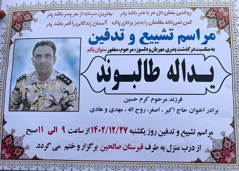 تصویر زیر آگهی ترحیم یداله طالبوند است: