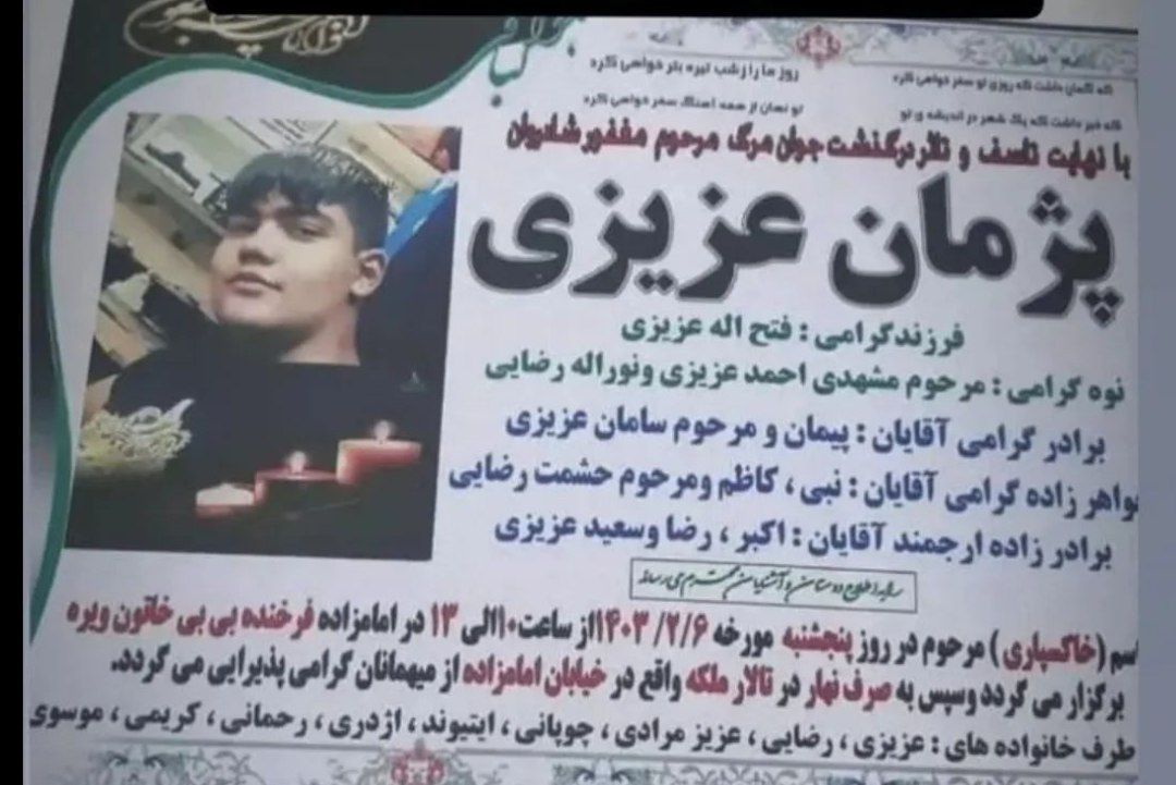 تصویر زیر آگهی ترحیم پژمان عزیزی است: