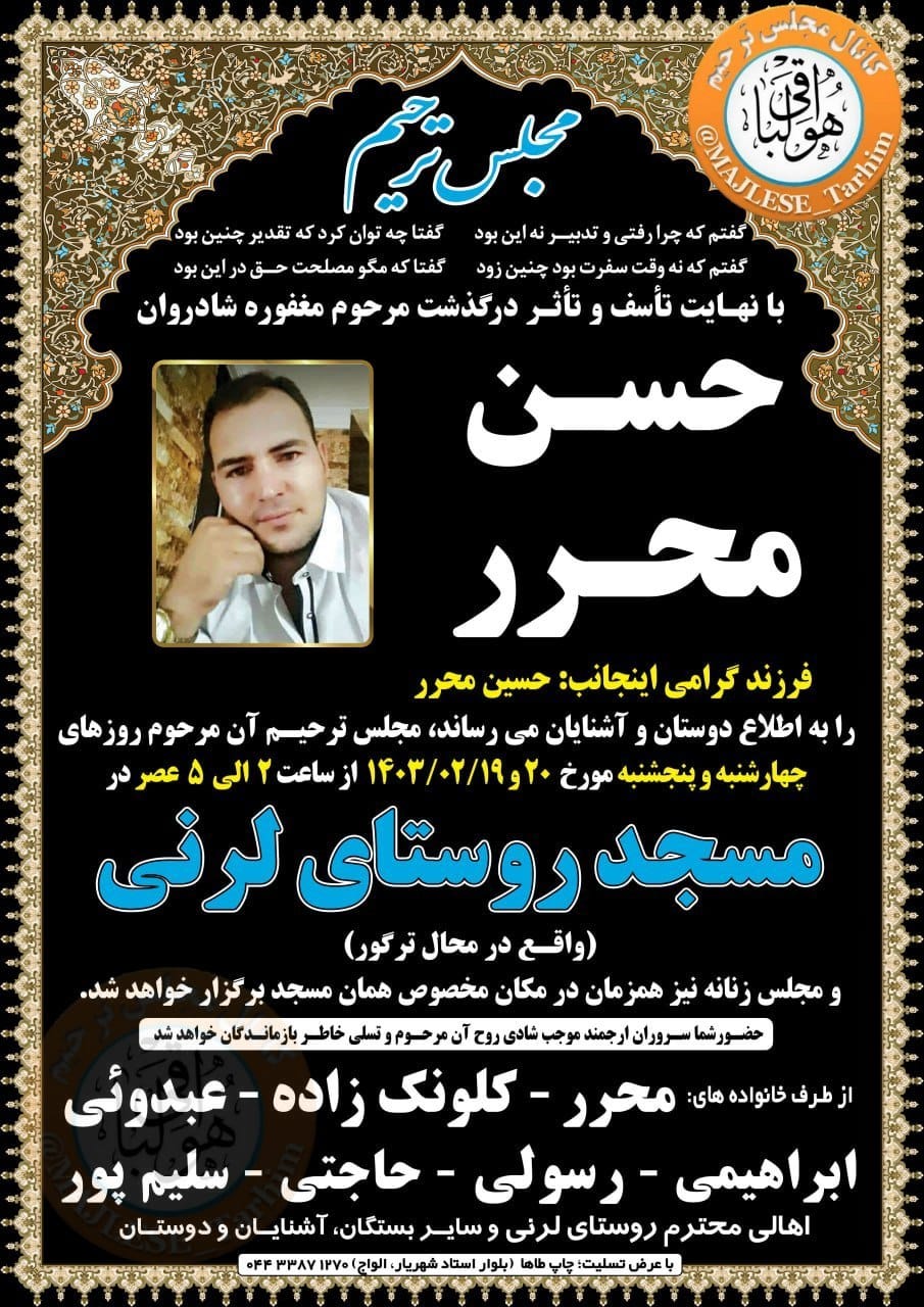 تصویر زیر آگهی ترحیم حسن محرر است: