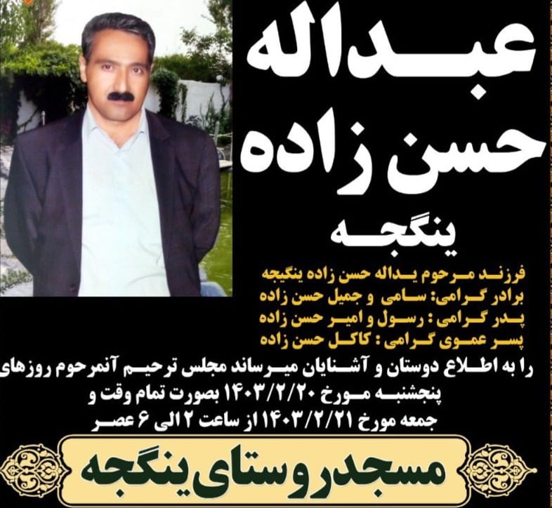 تصویر زیر آگهی ترحیم عبداله حسنزاده ینگجه است: