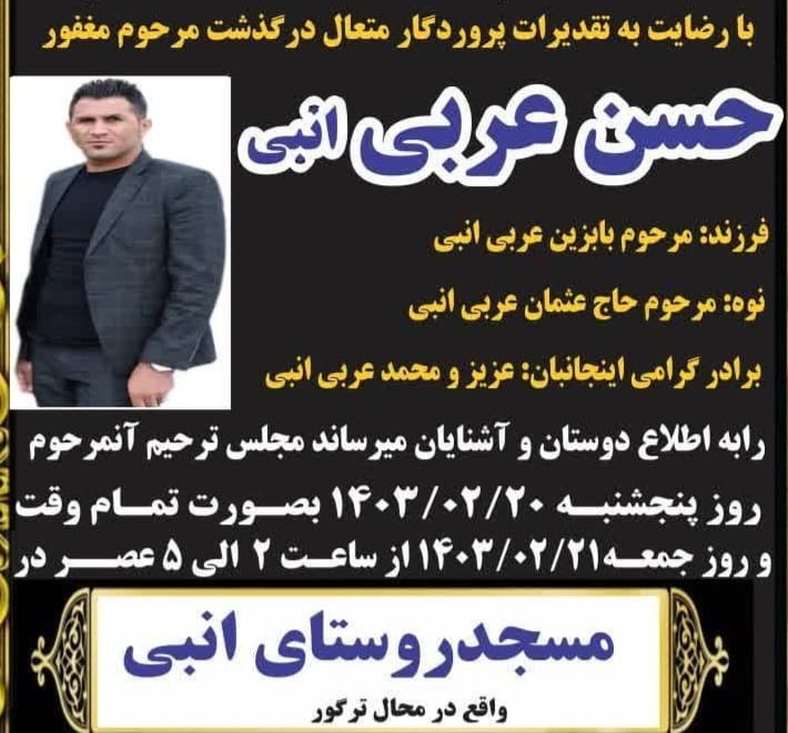 تصویر زیر آگهی ترحیم حسن عربی انبی است: